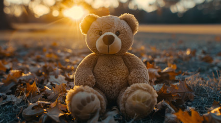 Brown teddy bear in autumn forest