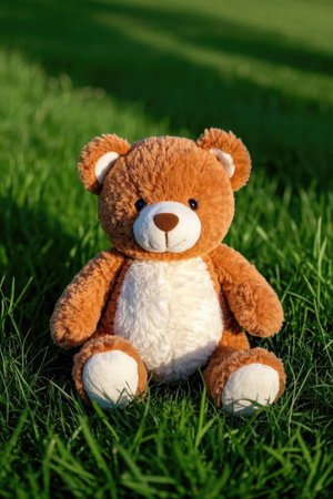 Brown plush teddy bear on the grass