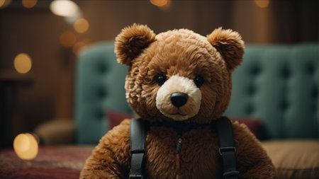 Cute teddy bear sitting on a sofa in the living room