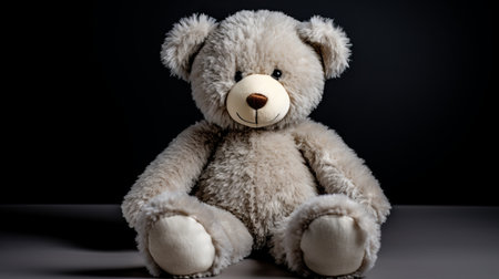 Teddy bear on a black background with copy space for text. Generative AI