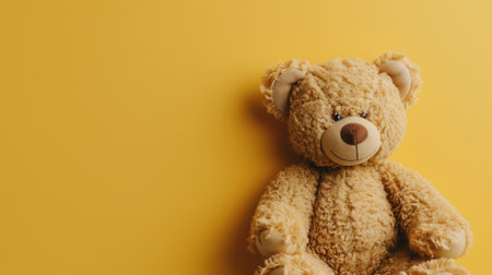 Portrait of a teddy bear on a yellow background