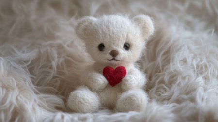 White teddy bear holding a small red heart generative ai