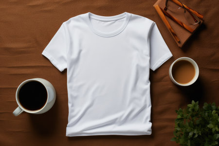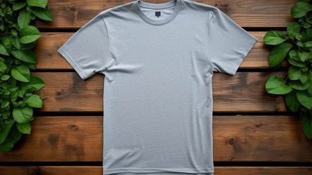 white blank tshirt on wooden background , AI Generated, for your design mockup for print