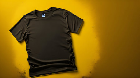 Yellow t-shirt on yellow background. Flat lay, top view.