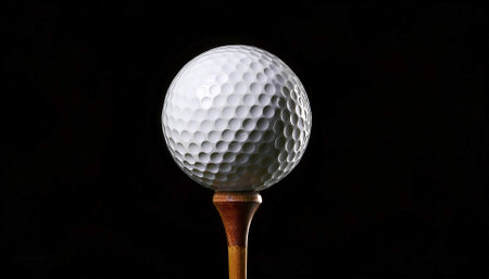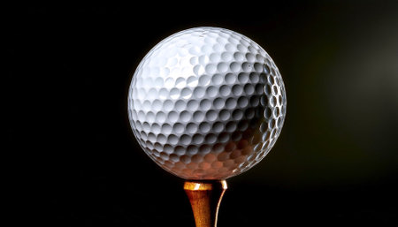 Golf ball on tee against dark background