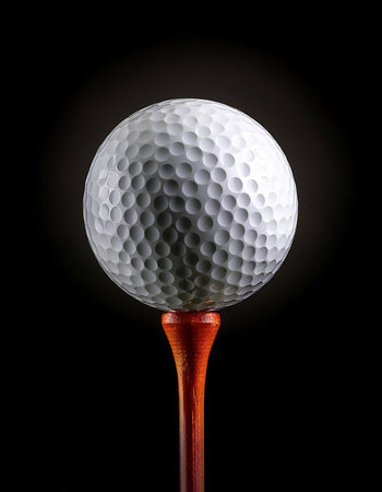 Golf ball on a tee with black background