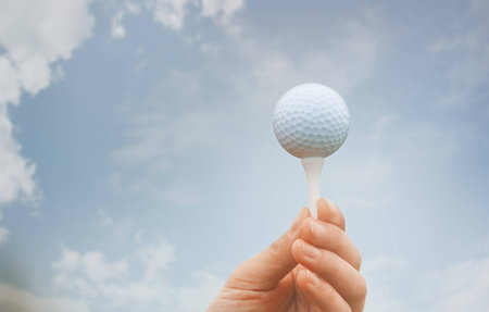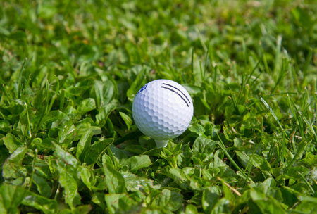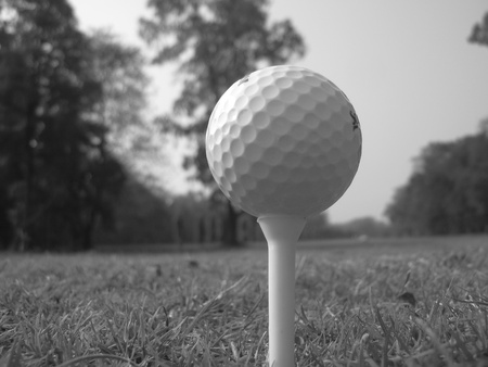 Golf ball on tee ready to be shot