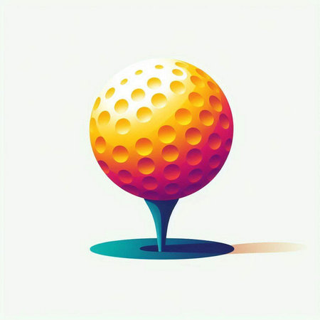 Golf ball on tee. Vector illustration of colorful golf ball.