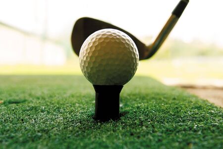 golf ball on tee in a beautiful golf course with morning sunshine.Ready for golf in the first short.Sports that people around the world play during the holidays for health.