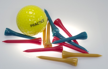 Old golf balls for practice on artificial grass