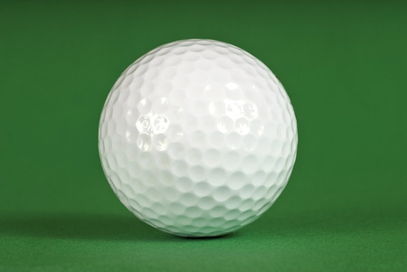 Single golf ball on the green background