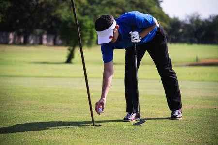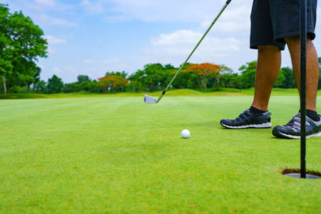 Golfer putt golf ball into hole on the green at golf course.