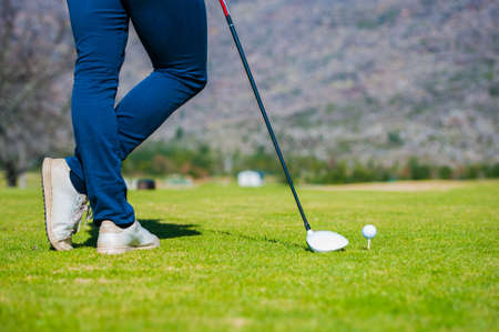 Driver shot on the tee ground of the golf course