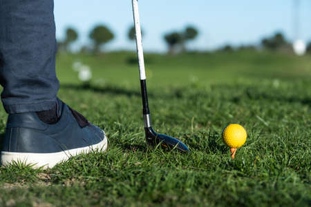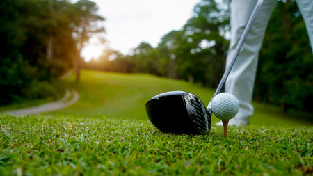 Golfer about to tee off on a sunny day at the golf course