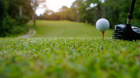 golf ball on tee at green grass prepair to tee-off