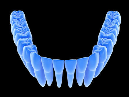 Dental Anatomy of mandibular human gum and teeth, x-ray view. Medically accurate tooth 3D illustration