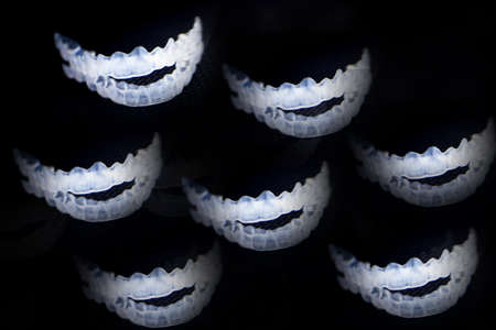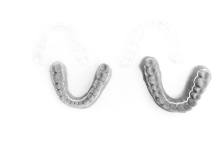Invisible clear dental teeth aligner straighteners for orthodontic dentists treatment as modern aesthetic brackets.