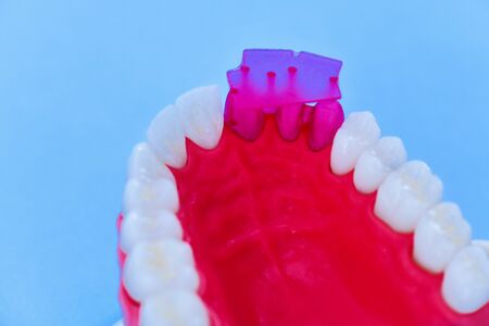 Dental layout of the jaw and teeth in the clinic, training material. The concept of medicine and prevention of diseases of the oral cavity.