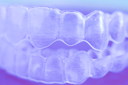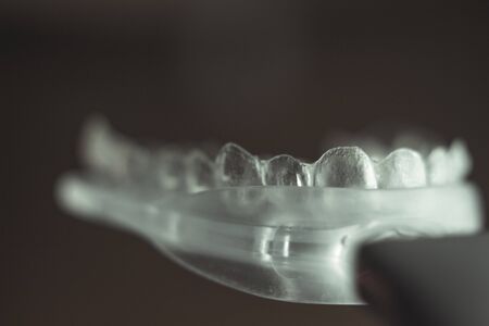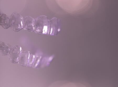Invisible orthodontics cosmetic brackets, tooth aligners, plastic braces. Modern teeth retainers created on a 3d printer. A way to have a beautiful smile and white teeth.