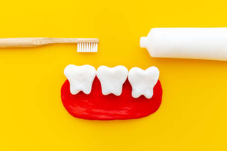Concept of dental care on yellow background