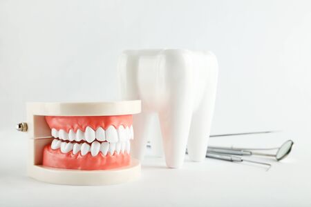 Close up of plastic teeth models,Concept of dental checking