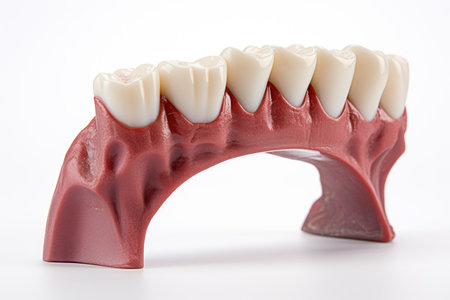 a close-up shot of a ceramic dental bridge on a white background