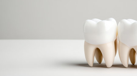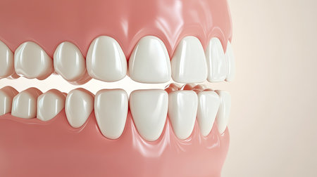 Realistic rendering of human teeth and gums, with ample space on the left for text or branding.