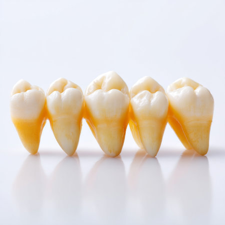 A detailed view of human teeth designed for educational use in dentistry, emphasizing dental health, hygiene practices, and oral anatomy understanding.