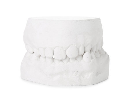 Detailed view of a dental model displaying teeth alignment