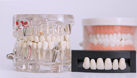 Artificial Model Teeth on white background of dental care demonstration