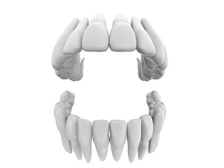 Teeth or dentures isolated on white. Open human mouth upper and lower jaw. 3D illustration.3D rendering.