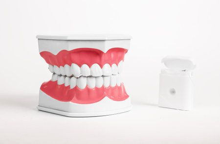 Dental floss and teeth jaw. Dental hygiene concept. High quality photo