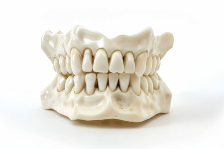 Realistic model of human teeth in jaw, showcasing dental anatomy for educational purposes in art, science, dental study, and healthcare training environments
