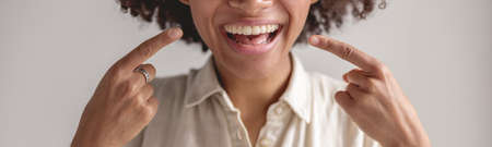 Closeup of woman's mouth with white teeth. Dentistry concept.