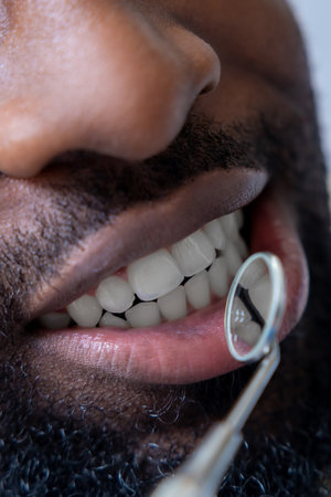 Closeup of teeth sandblasting, tartar cleaning and whitening