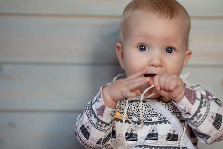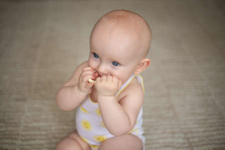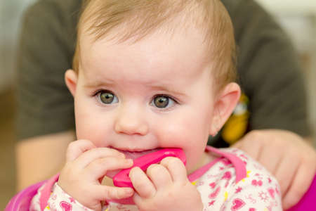 Little cute Baby girl chewing teething beads