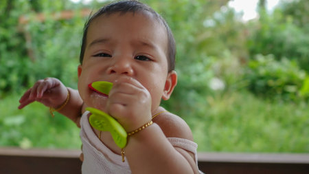 Asian Thai baby girl chewing toy
