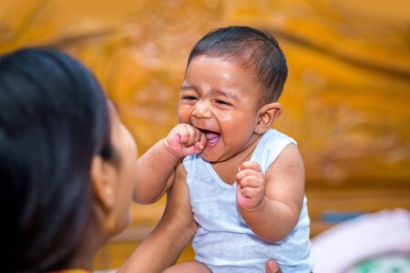 Beautiful kid different poses looks very handsome. Small child after born have soft cheeks and innocent small face with a shing smile.