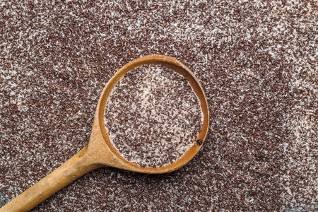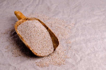 food background. Fiber of seeds of Psyllium plantain and plantago ovata.