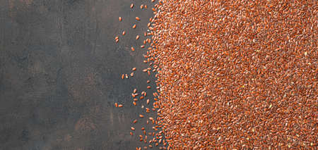 Flax seeds on a brown background with space to copy. top view