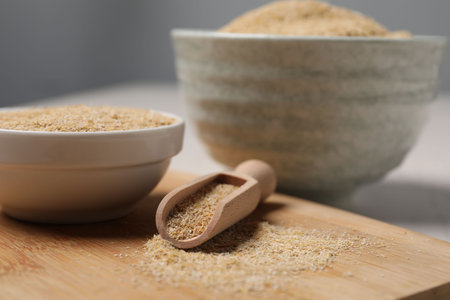 Dried bakers yeast over wooden background