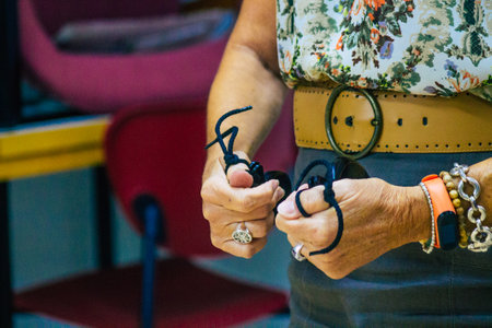 Seville Spain July 23, 2021 Closeup of the hands of castanets players, favorite musical instrument of flamenco dancers in Spain, gives rhythm and accompanies singing