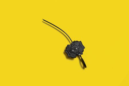 Terrorist bomb made at home with remote controlled detonator and lot of cables. Prepare to terorist act.