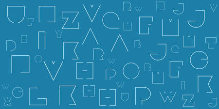 Various Blue Randomly Placed, Sized and Oriented Art Deco Style Bold Letters Pattern - Texture on Dark Wide Scale Background, Design Element for Web or Book Covers in Editable Vector Format