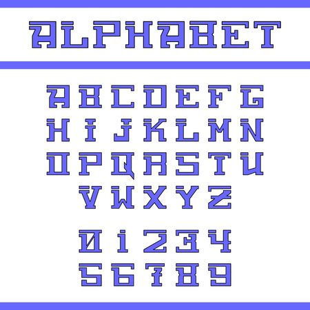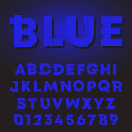 Blue letters and numbers gradient shadow design. Alphabet font template. Vector illustration.