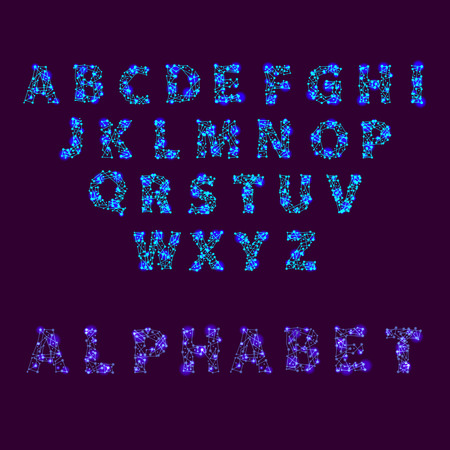 Stylish Font Poster with blue letters from alphabet on the white background vector illustration