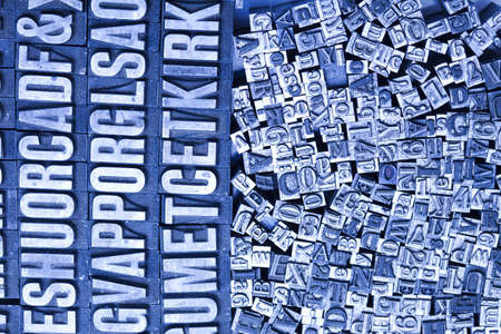 metal type abstract - vintage letterpress printing blocks with letters, dollar sign and question mark stained by color inks