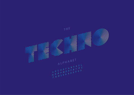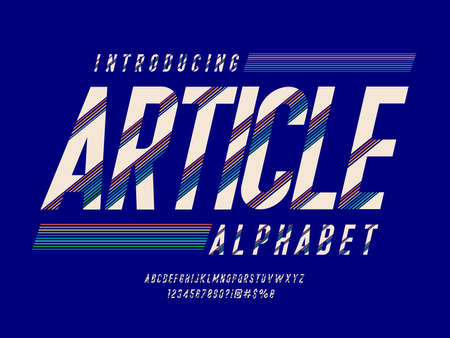 Vector of modern stripe style alphabet design with uppercase, numbers and symbols