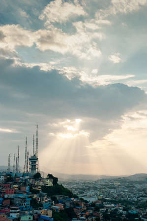Panoramic photo of Las Peñas - the oldest area of Guayaquil city at sunset taken from Malecon 2000, South Ecuador 2015.