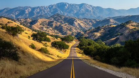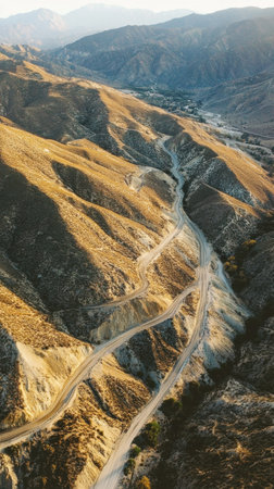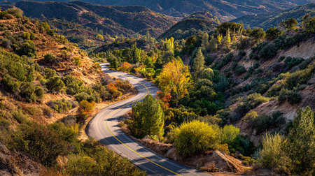 Winding Mountain Road Through Golden Hillsides, Offering Scenic Views and Nature s Embrace